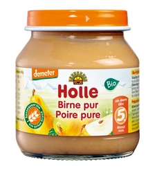Perenpuree zonder toegevoegde suikers, glutenvrij, vanaf 5 maanden, Demeter biologisch, 125 g potje – Holle